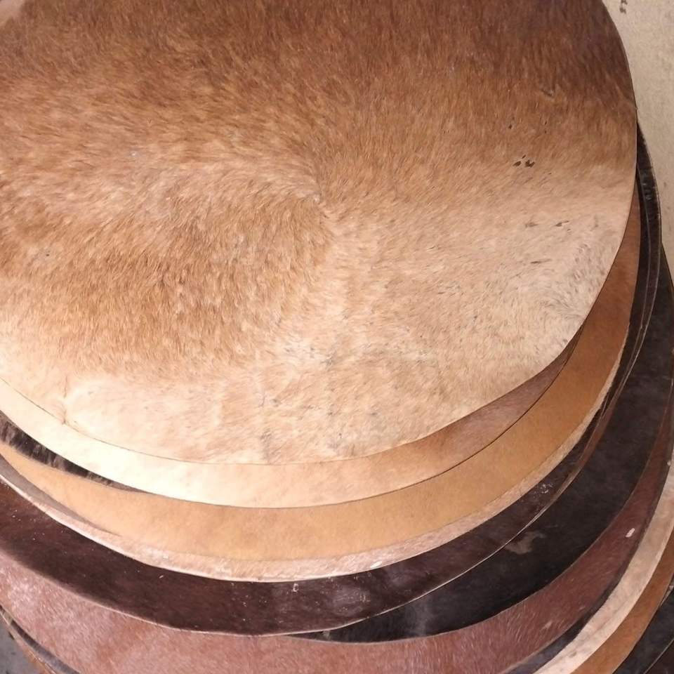 หนังสัตว์กลมมีขน หนังแพะหรือหนังวัว ใช้สำหรับทำกลองได้หลากหลายรูปแบบ หนังกลองสีดำและสีขาว หนังวัว