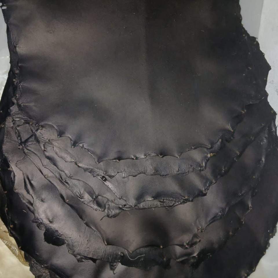 หนังแพะกลม ขนยาว อาจใช้แทนหนังกลองสำหรับเจมเบ้หรือกลองแอฟริกันอื่นๆ หนังแพะสีดำ
