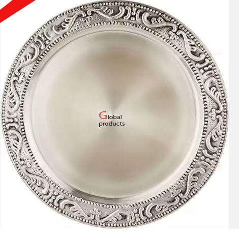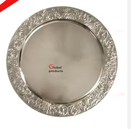 จานที่ชาร์จสำเร็จรูปสำหรับร้านอาหารโรงแรมและบาร์โลหะสีเงินรูปทรงกลม