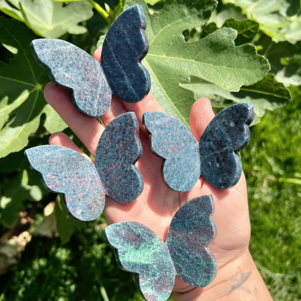 ทับทิมใน kyanite 3D ผีเสื้อรูปปั้นทำมือผีเสื้อคริสตัลธรรมชาติสำหรับการรักษาเรกิสงบของขวัญและของตกแต่งบ้าน