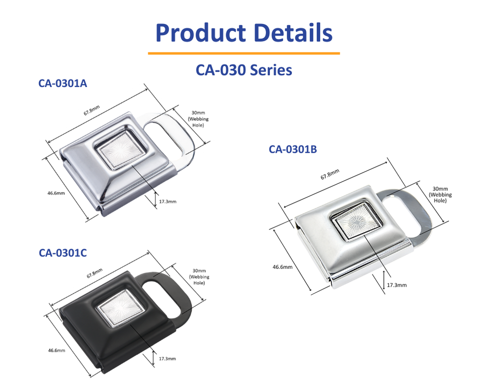 Webbing Hole Diameter of Buckles:19, 20, 24, 24.5, 25, 27, 30, 42.5, 46, 50, 51.5mm