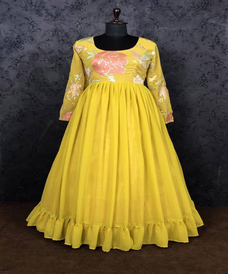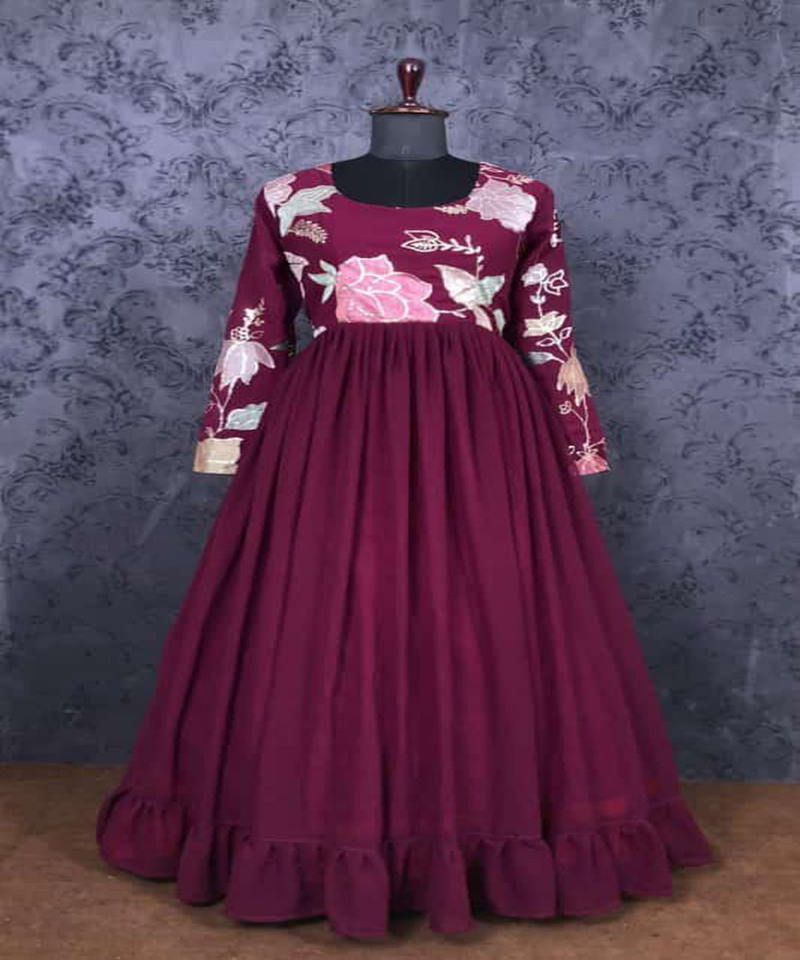 Sequence and Embroidery Long Flair Gown Wholesale Lowest Price Market Gujarat Ethnic Garment Alphanumero
