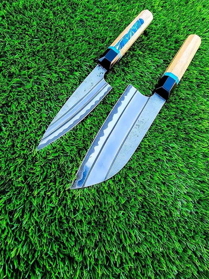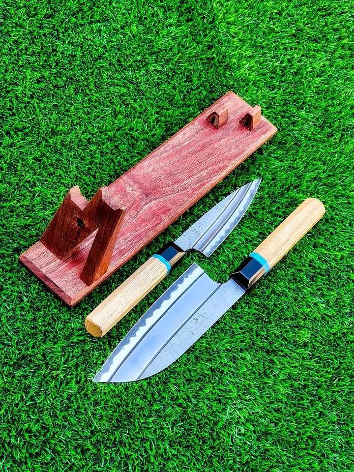 ชุดมีดทำครัวเหล็กกล้าคาร์บอน2ชิ้นพร้อมที่จับไม้ครบรอบหรือของขวัญคริสต์มาสสำหรับใช้ในครัว