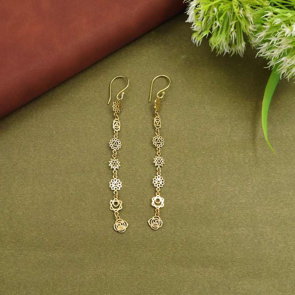 seven chakra brass long drop lightweight earring jewelry, golden silver dangle women accessories.