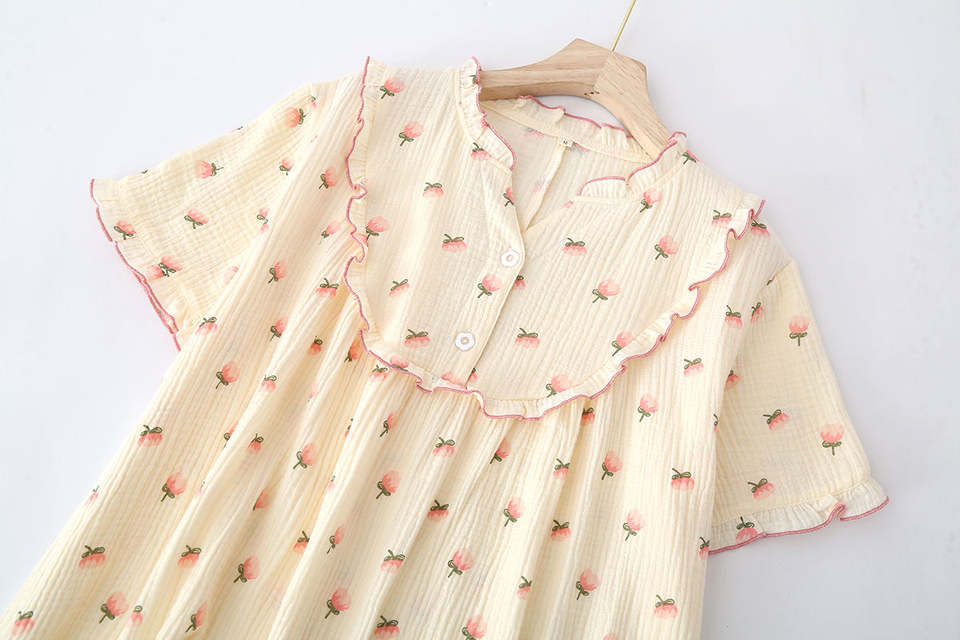 เซตชุดนอนผู้หญิงแขนสั้นพร้อมวัสดุนุ่มเพื่อการนอนหลับที่อบอุ่นและสบาย