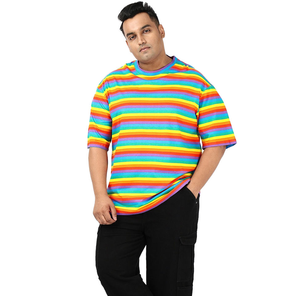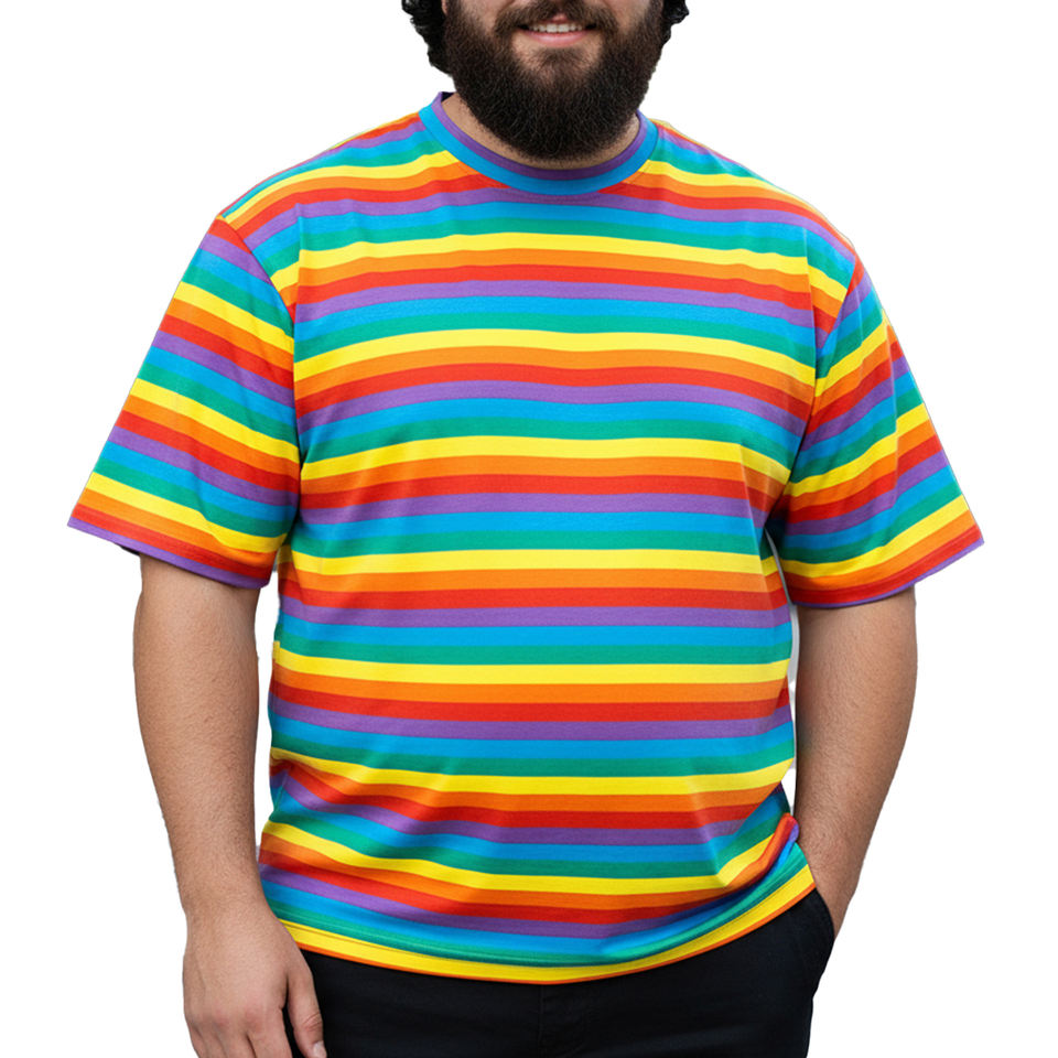 เสื้อยืดแขนสั้นไซส์ใหญ่ โอเวอร์ไซส์ ลายทางหลากสี เสื้อยืดผู้ชาย สั่งทำได้ พิมพ์ลายแบบซับลิเมชั่น เสื้อยืดเกย์ เสื้อยืดโอเวอร์ไซส์ ยูนิเซ็กซ์