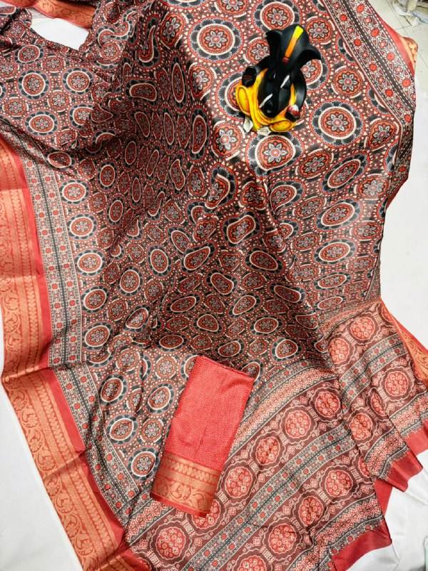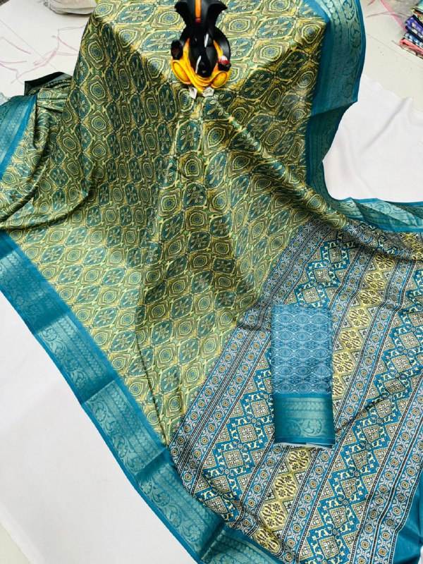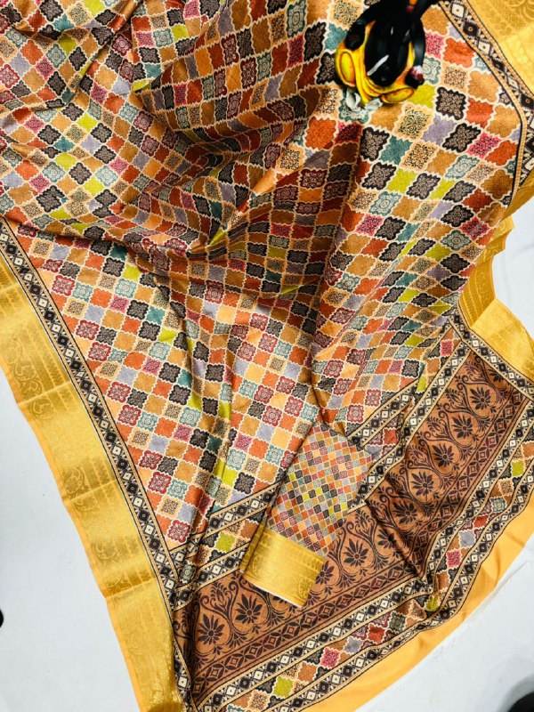 ส่าหรีผ้าไหมพิมพ์ลายดิจิตอลหลากสีสวยงามมีขอบ kanchi