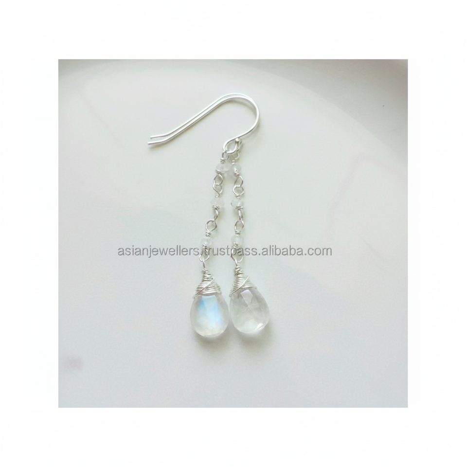 ต่างหูมูนสโตนสีรุ้งเงินแท้ 925 ต่างหูพลอยเงินแท้ งานแฮนด์เมด เครื่องประดับเงิน