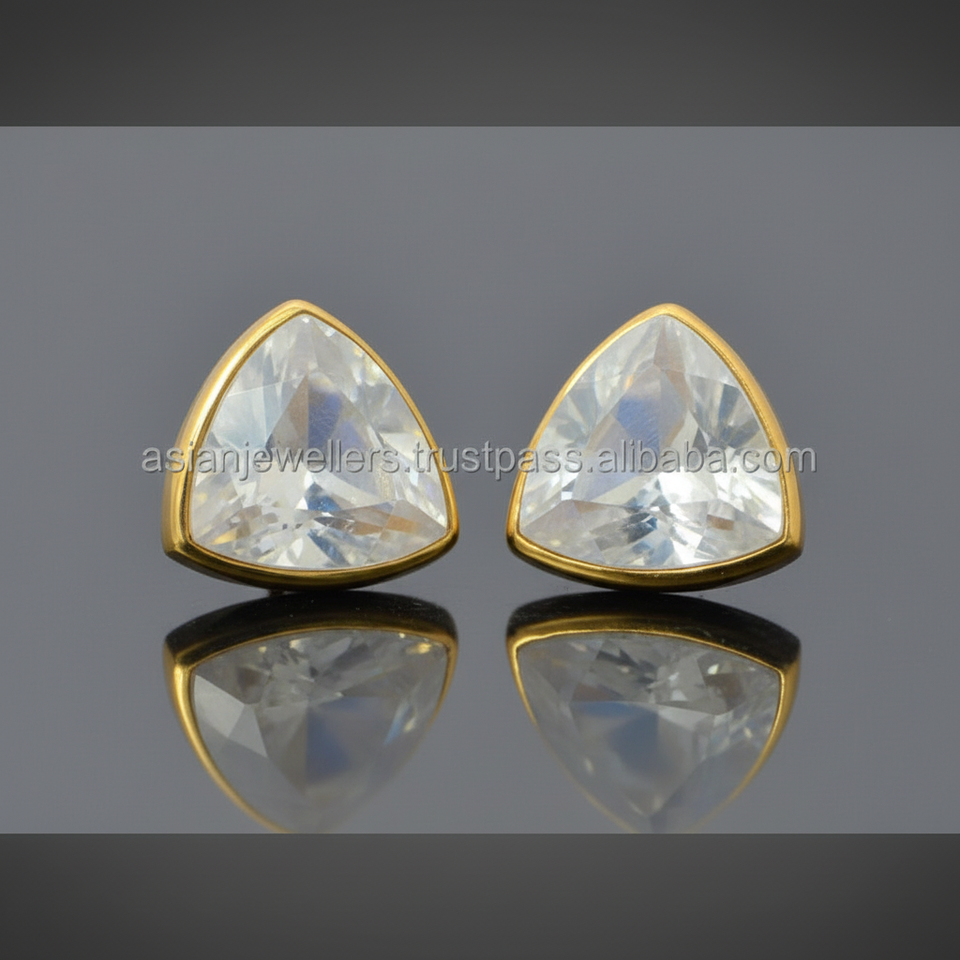 ต่างหูเม็ดเดี่ยวลายพระจันทร์สีรุ้ง925ทองพลอยเงินสเตอร์ลิงทำด้วยมือเครื่องประดับสำหรับงานแต่งงาน