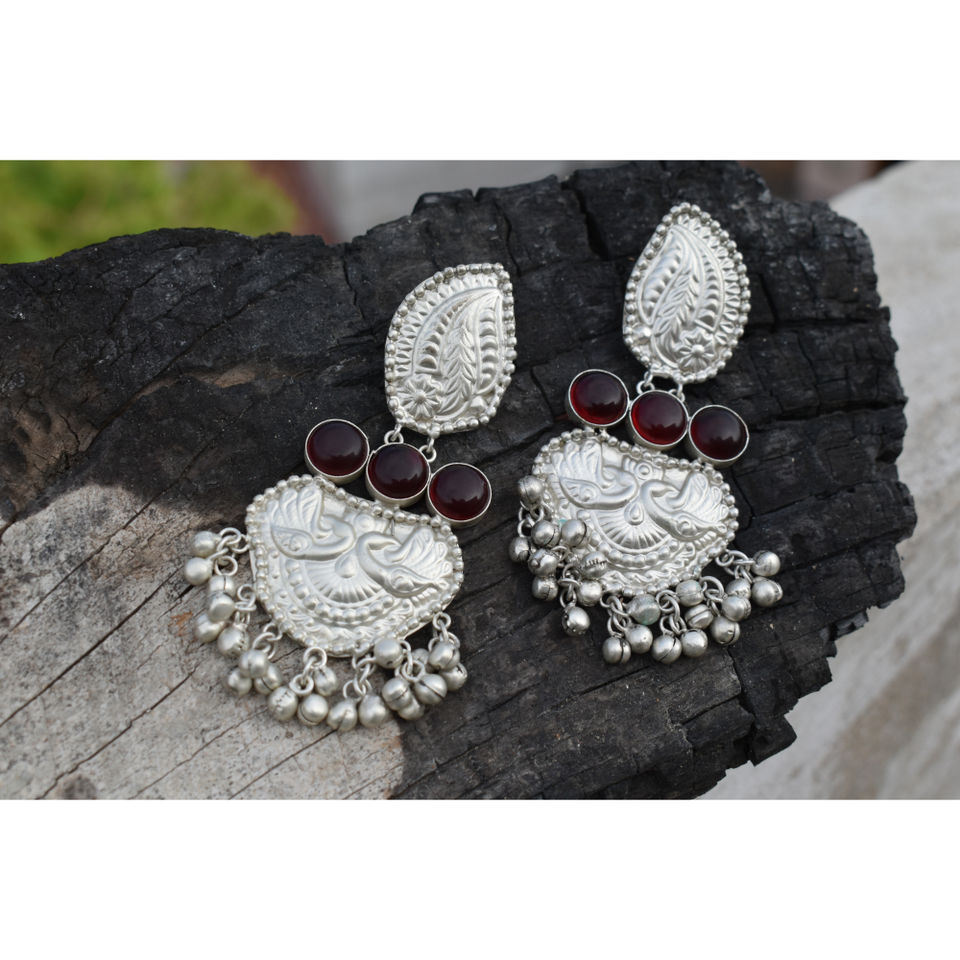 silver look alike brass traditional new design handmade stone stud big ghungro hoop earing for girls and women