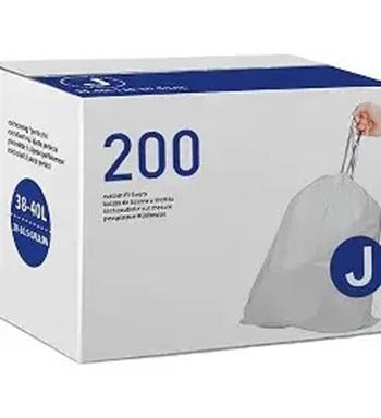 ถุงขยะแบบมีเชือกผูก simplehuman Code J Custom Fit, 100 ใบ, 30-45 ลิตร / 8-12 แกลลอน, สีขาว