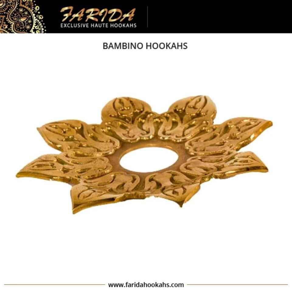 ถาดอุปกรณ์ชิชาพรีเมียม ฟาริดา รุ่นบัมบิโน ฮุคก้ามินิ ลายดอกไม้ ขอบโค้ง แบบทองแดงแท้ ดีไซน์เอกลักษณ์แบบอียิปต์ ทองเหลืองแท้ หรูหรา