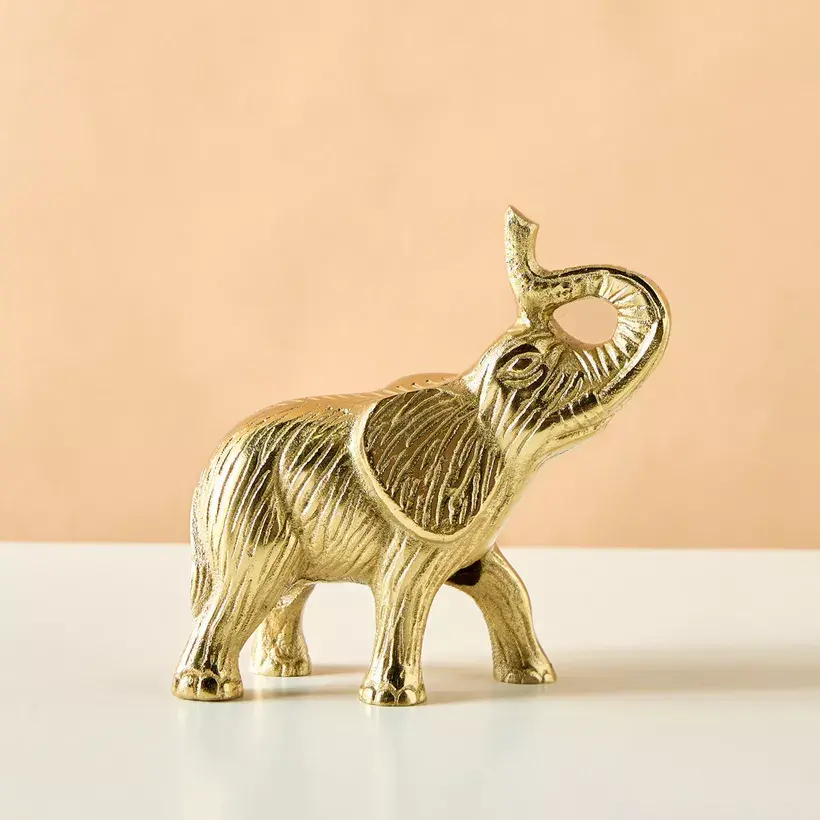 รูปปั้นช้างขนาดเล็กตกแต่งด้วยรูปปั้นช้างขนาดเล็กสีทองเมทัลลิกตั้งตรงนำเสน่ห์
