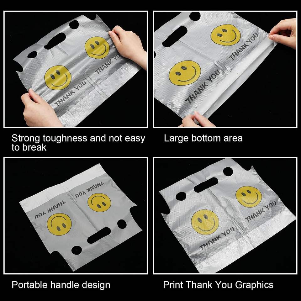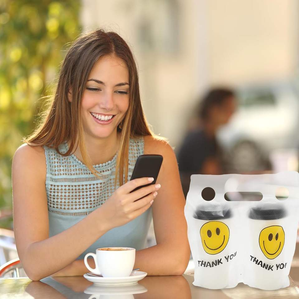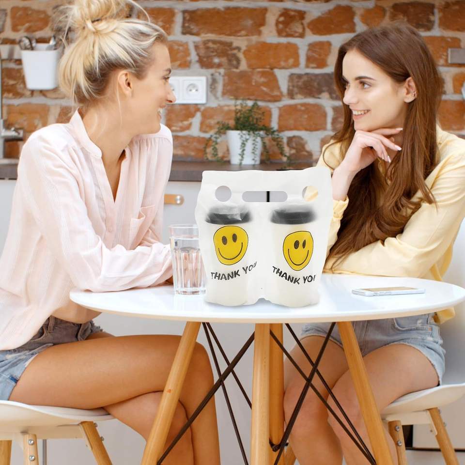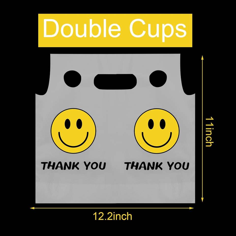 Durable Smile Logo Print BOPP+Aluminum+PE Opp Bag Packing Patch Handle Customizable Size Promotion Supermarket Beverage Cups