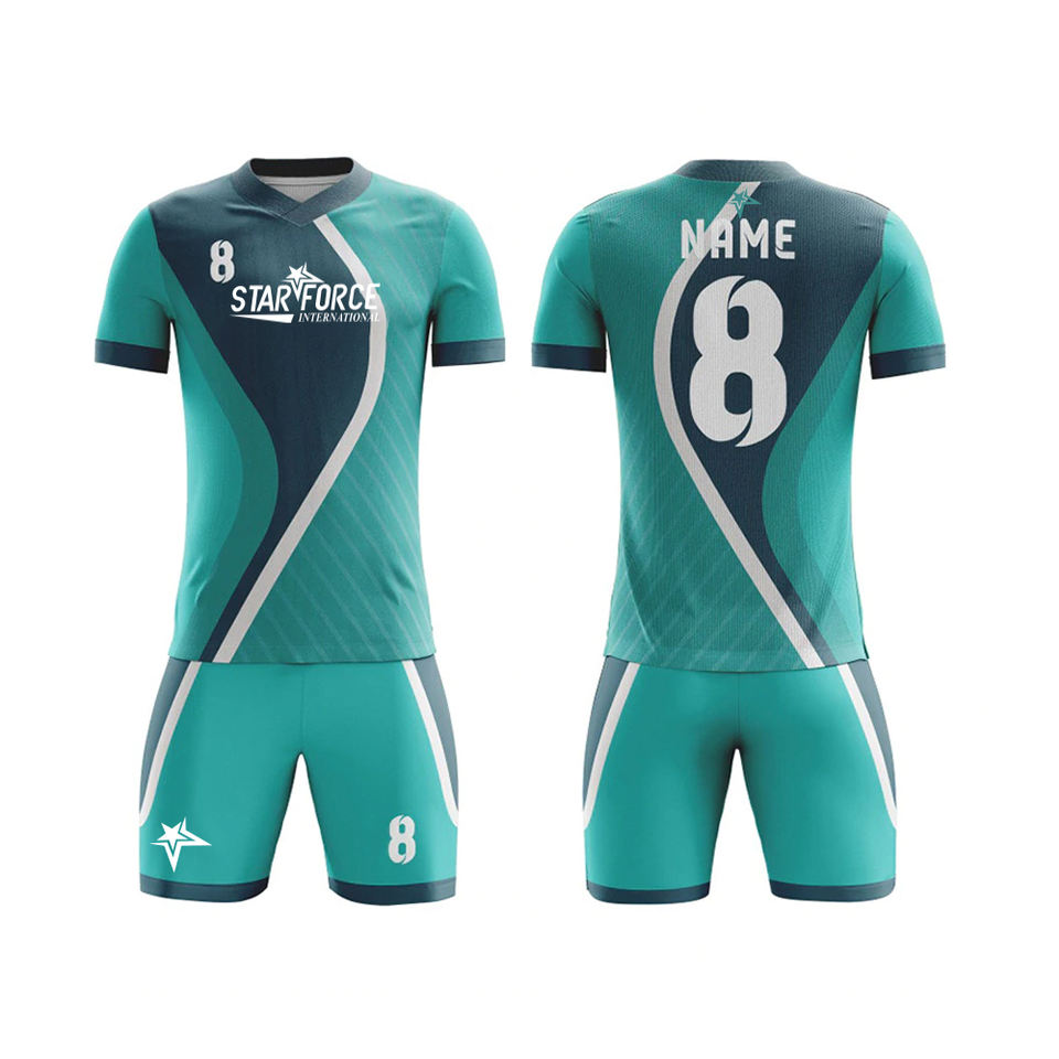 ชุดยูนิฟอร์มฟุตบอลผ้าโพลีเอสเตอร์แบบสั่งตัดผ้าแห้งเร็วระบายอากาศได้ดีผ้า100% ดีไซน์ที่ดีที่สุด