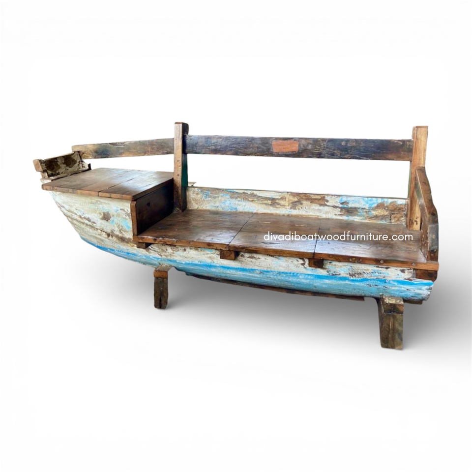sofa made from used boat wood combines rustic charm with a sturdy design, perfect for homes, villas or hotels