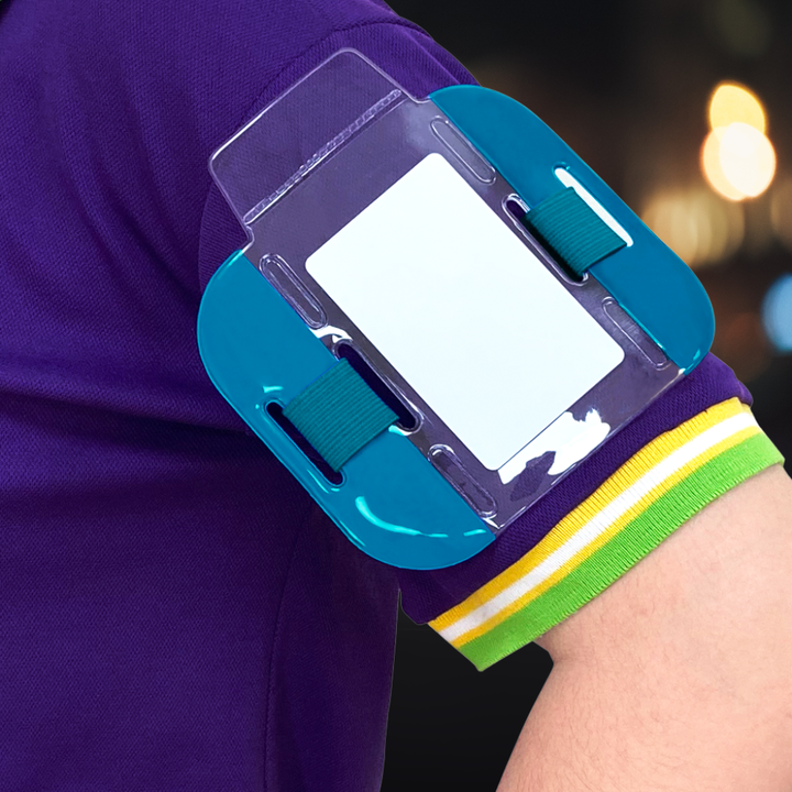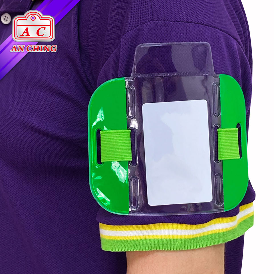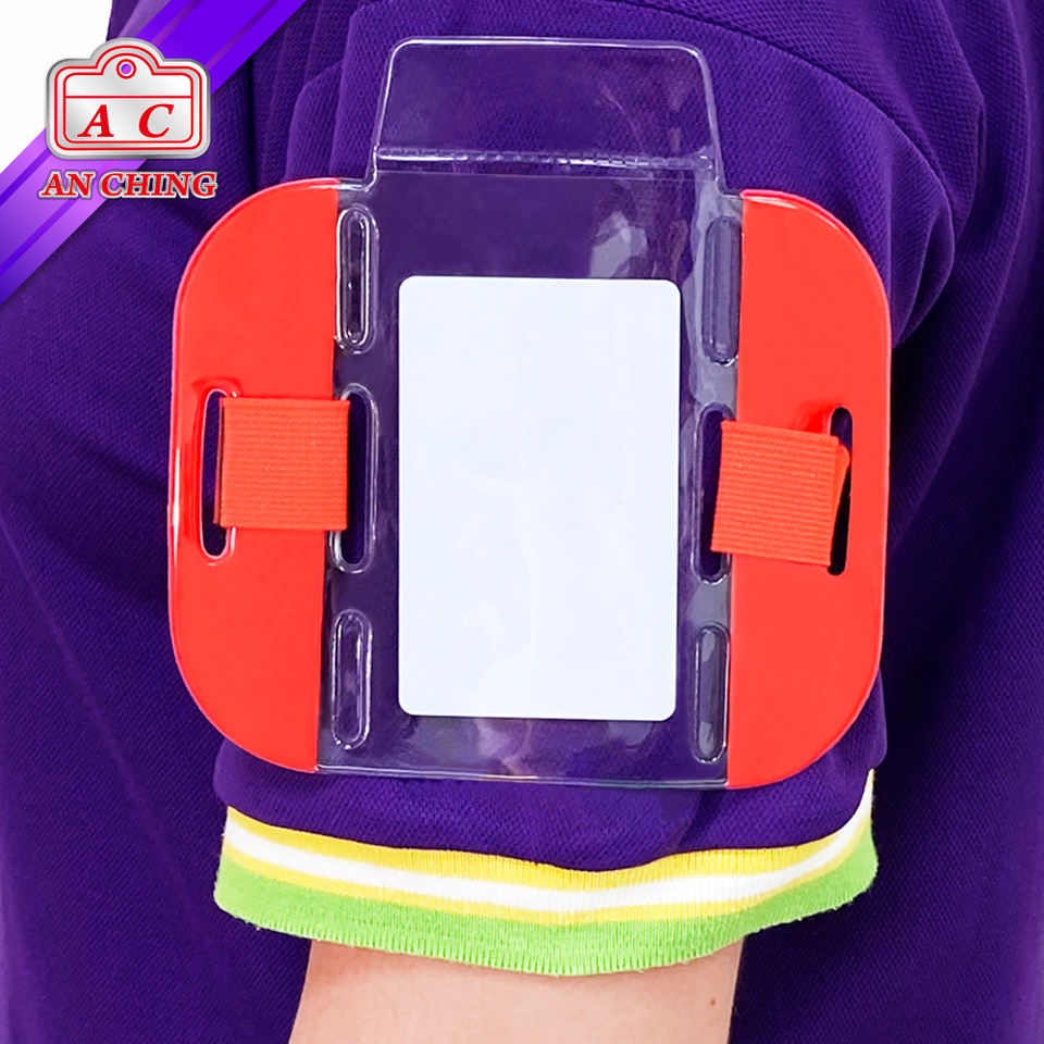 ที่ยึดปลอกแขนใส่บัตรพลาสติกพีวีซีแบบนิ่มเพื่อความปลอดภัย