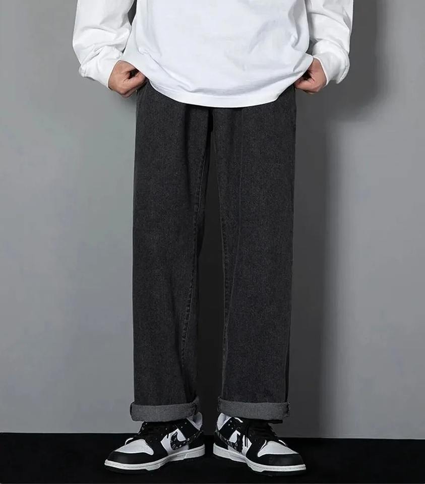กางเกงยีนส์ขายาวแบบลำลองของผู้ชายสีทึบกางเกงยีนส์ขากว้างสีฟ้าอ่อนสีดำเทาสี่ฤดูสำหรับผู้ชายคลาสสิก