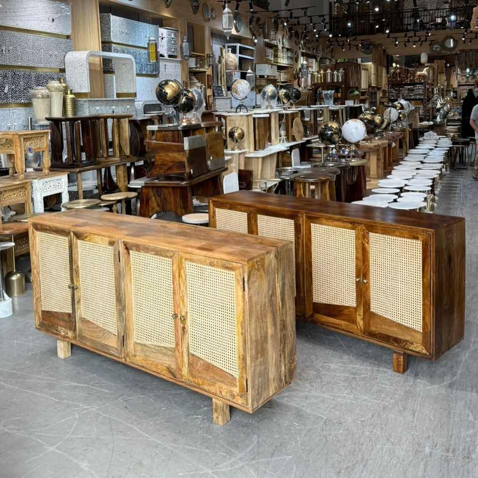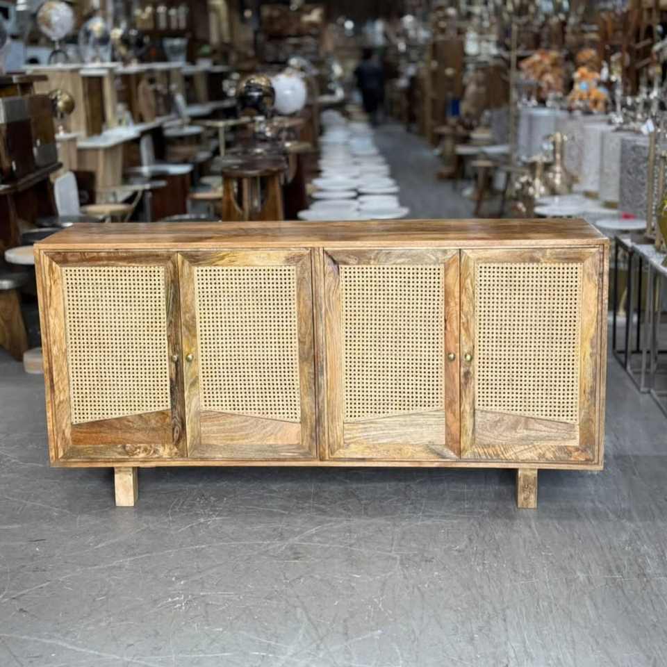 ตู้เก็บของไม้จริงตกแต่งหวายสไตล์โมเดิร์น