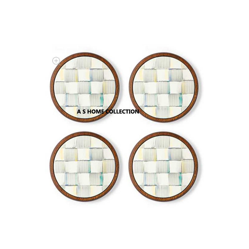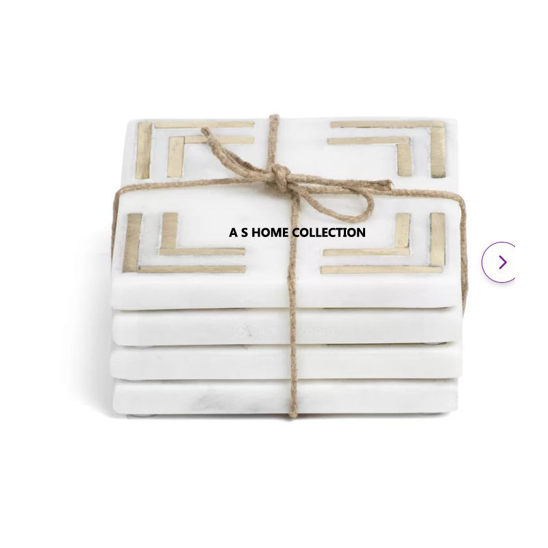 ที่รองแก้วทองเหลืองงานประดิษฐ์ตกแต่งด้วยมือหินอ่อนสีขาวดีไซน์เนอร์ทรงสี่เหลี่ยม