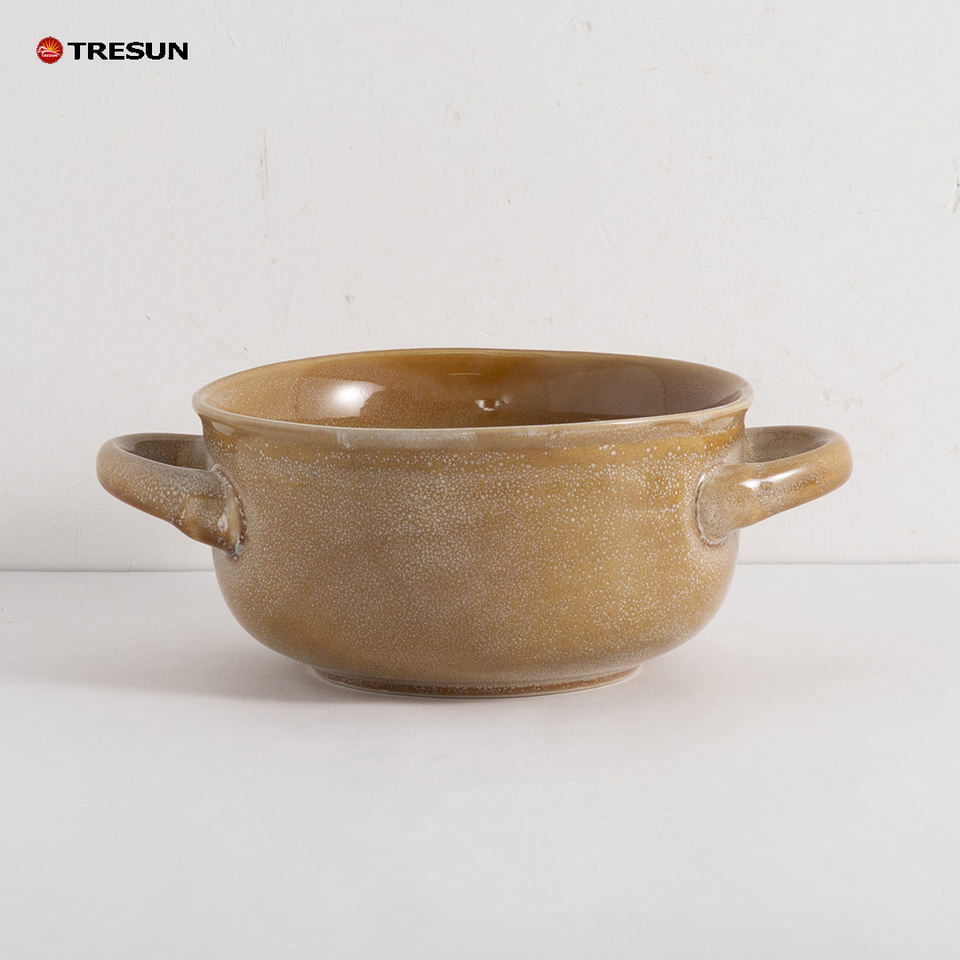 ถ้วยชามเซรามิกพร้อมที่จับสำหรับใช้กับเครื่องล้างจานขนาด20ออนซ์ถ้วยซุปหัวหอมแบบวางซ้อนกันได้ใช้กับเตาอบได้อย่างปลอดภัย