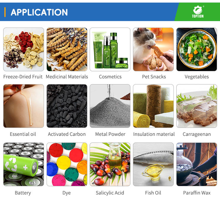 พลาสติก, สารเคมี, อาหาร, อื่นๆ, เครื่องสำอาง, แป้ง, ทาสี, หมึก, ของเหลววัสดุประมวลผล