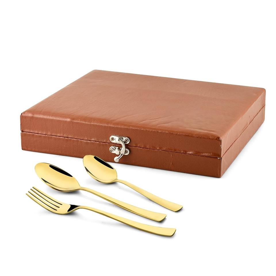 ชุดช้อนส้อมสแตนเลสสีทอง ชุดอาหารค่ำพรีเมียม ชุดภาชนะหรูหรา ชุดช้อนส้อมโรงแรมสีทอง ชุดช้อนส้อมของขวัญแต่งงาน