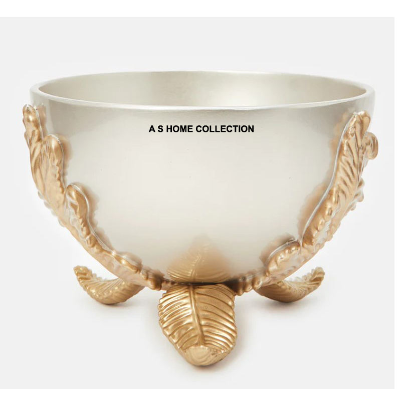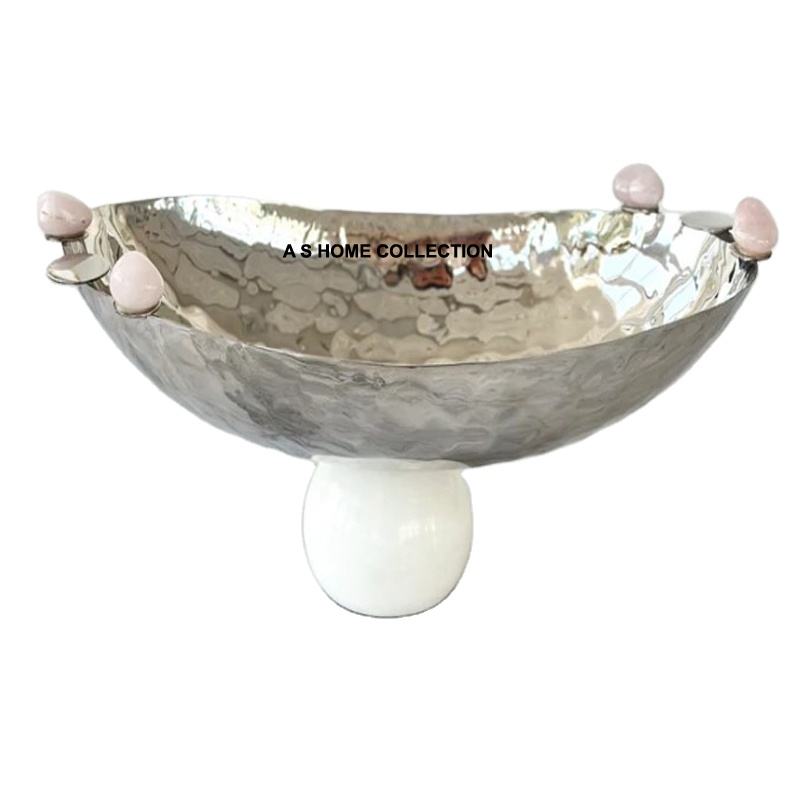 ชามตกแต่งโต๊ะฐานโลหะสีขาวทรงกลมทำจากสแตนเลสทรงกลมเงาวาวพร้อมดอกไม้