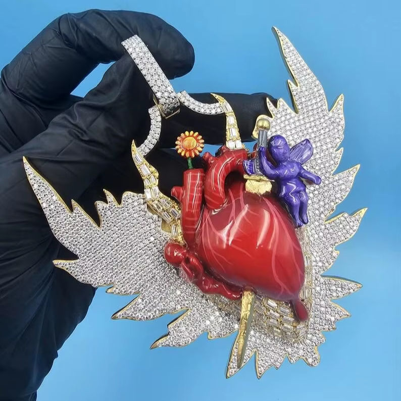 จี้รูปหัวใจปีกนางฟ้าเงินแท้ 925 ประดับเพชรโมอิสซาไนต์ทรงกลมเคลือบเงา สำหรับผู้ชายและผู้หญิง