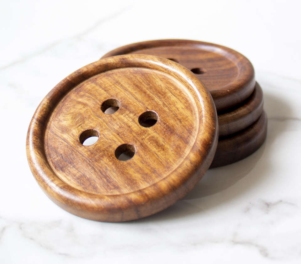 ที่รองแก้วทำจากไม้ทรงกลมหรูหราทรงปุ่มสไตล์วินเทจใช้ในห้องครัว