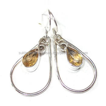ต่างหูแบบติดหู ขายส่ง ต่างหูเงินแท้ ดีไซน์สวย น้ำหนักเบา เหมาะสำหรับงานปาร์ตี้ ประดับด้วยพลอยสีเหลืองซิทริน ต่างหูเงินแท้