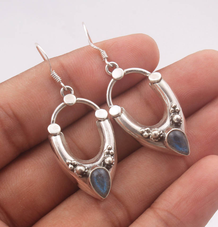 ต่างหูเงินสเตอร์ลิง925อัญมณีทรงหยดน้ำสไตล์ลาบราดอไรต์ที่สวยงาม