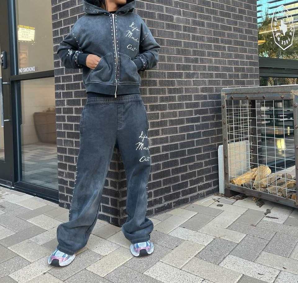 ชุดวอร์มผ้าคอตตอนมีฮู้ดโอเวอร์ไซส์พิมพ์ลายกางเกงชุดวอร์มผ้าฝ้ายระบายอากาศได้ดีมีสไตล์ออกแบบโลโก้ได้ตามต้องการ