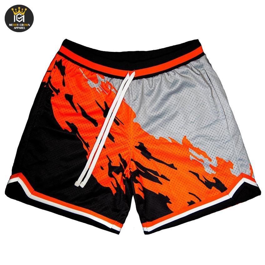 กางเกงขาสั้นออกกำลังกายพิมพ์ซับลิเมชันสำหรับผู้ชายกางเกงขาสั้นสองข้างมีกระเป๋าพิมพ์ลาย