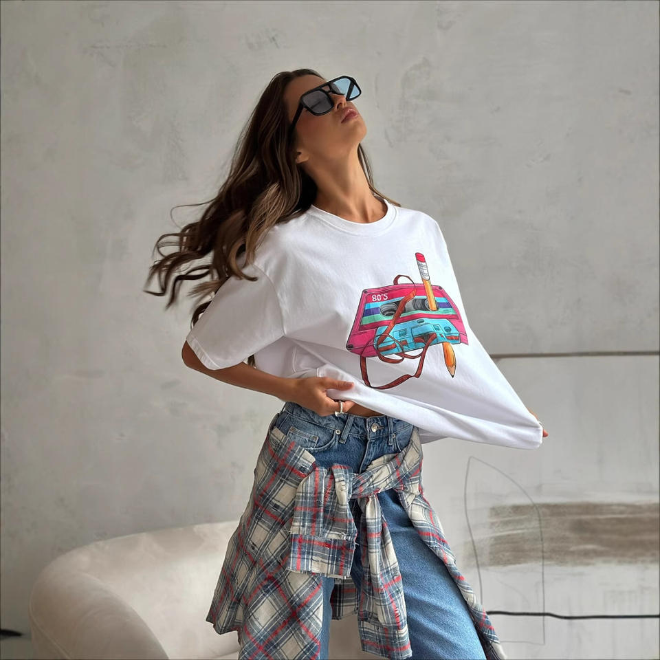 เสื้อยืดพิมพ์ลายแฟชั่นวินเทจสำหรับผู้หญิงใส่ในฤดูร้อนเสื้อยืดทรงหลวมสไตล์ฮิปฮอป