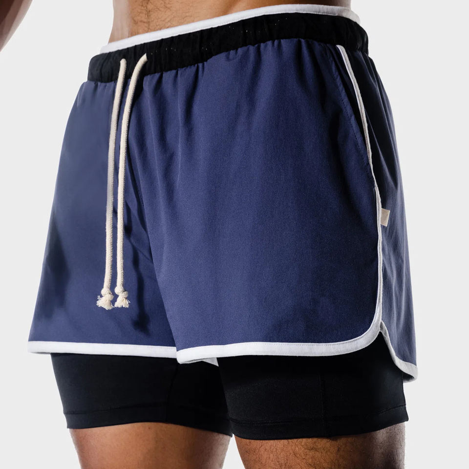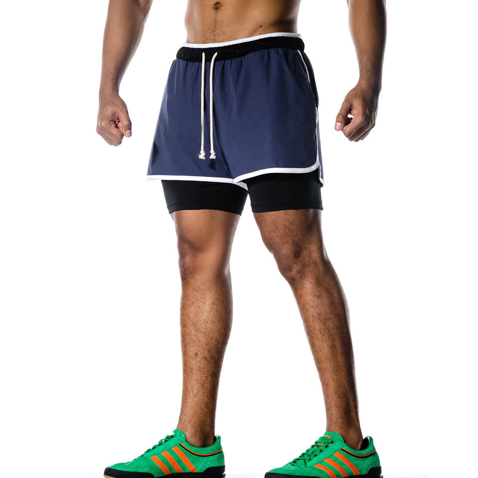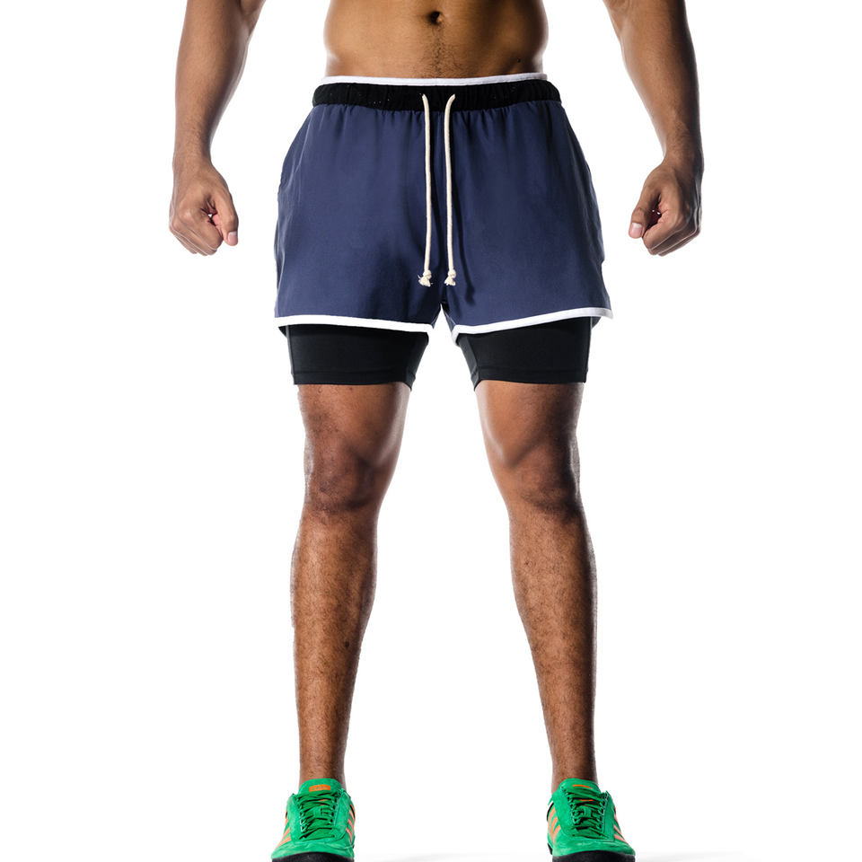 กางเกงขาสั้นรัดกล้ามเนื้อแบบสั้นของผู้ชาย,กางเกงวิ่งฟิตเนสแบบ2 In 1รัดกล้ามเนื้อรัดกล้ามเนื้อสองชั้นสำหรับฤดูร้อน
