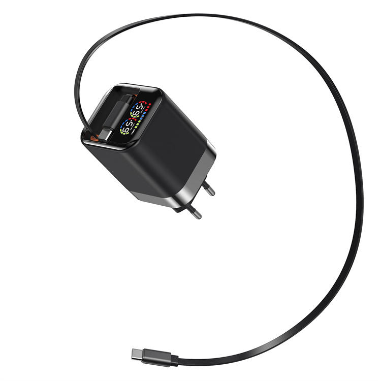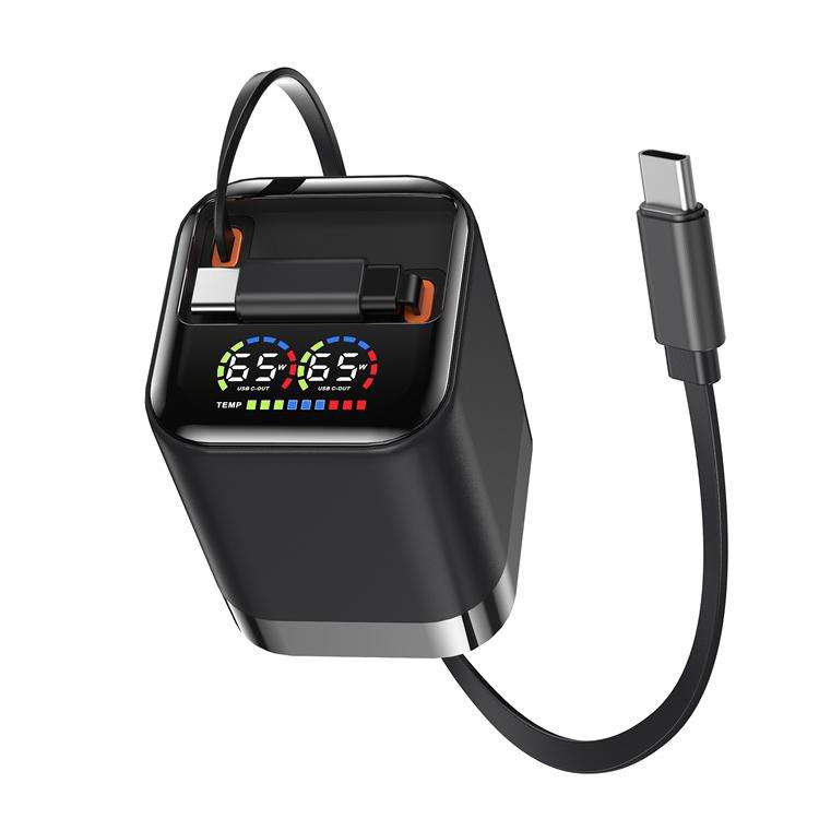 ที่ชาร์จโทรศัพท์แบบมินิ ชาร์จเร็วพิเศษ 65W GaN พร้อมสายชาร์จแบบยืดหดได้ หน้าจอ LED แสดงผลแบบดิจิตอล รองรับการชาร์จหลายอุปกรณ์พร้อมกัน