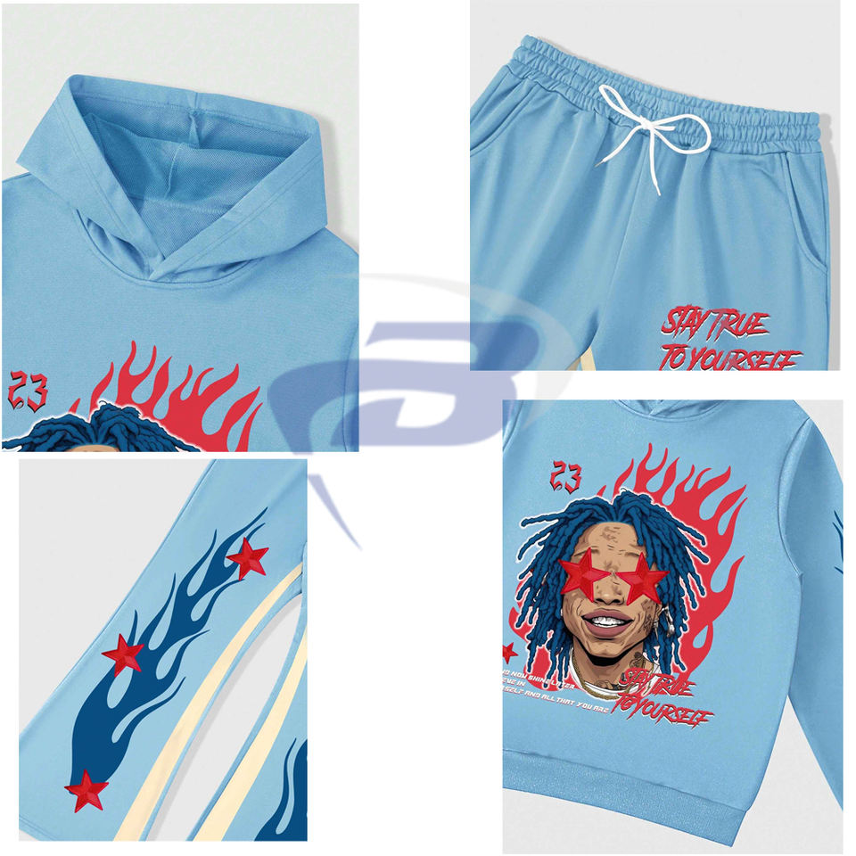 ชุดเซ็ตเสื้อฮู้ดและกางเกงพิมพ์ลายสำหรับผู้ชาย ฤดูหนาว แบบ unisex สไตล์สตรีทแวร์ ชุดลำลองสั่งทำได้ เนื้อผ้าเบา ระบายอากาศดี แฟชั่นทันสมัย