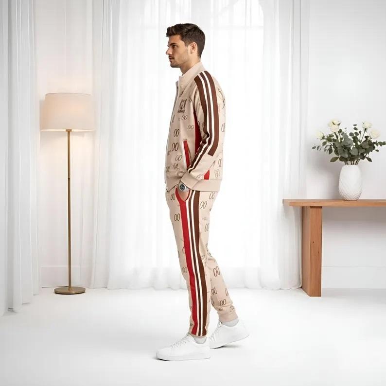 ชุดวอร์ม | เสื้อแจ็คเก็ตสีเบจแบบซิป ลายเส้นสปอร์ต ผ้าผสมคอตตอน-โพลีเอสเตอร์