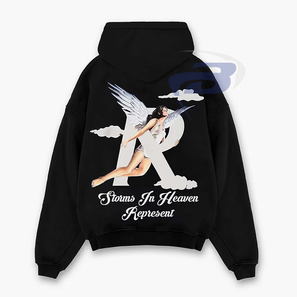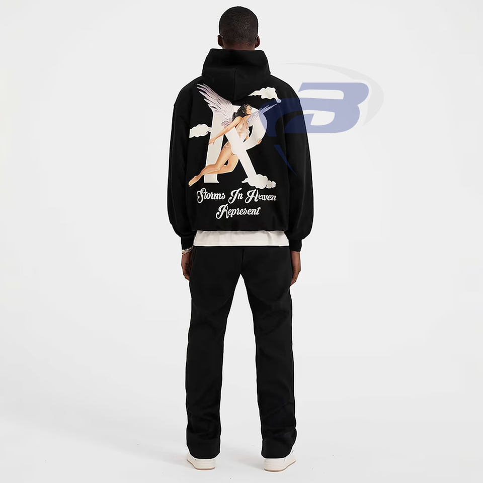 เสื้อฮู้ดดี้ Unisex คุณภาพสูง พิมพ์ลายกราฟิก ผ้าฝ้ายฟลีซ สไตล์ลำลอง สตรีทแวร์ สีดำ เสื้อพูลโอเวอร์ ผ้าฝ้ายฟลีซ ลายอนิเมะ