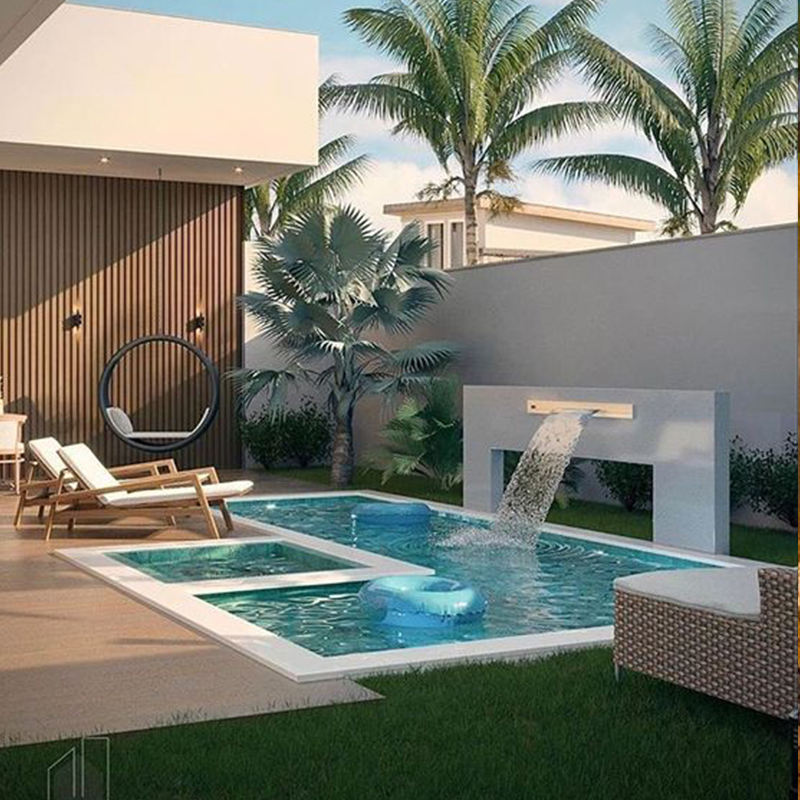 สระว่ายน้ำสำเร็จรูปสำหรับครอบครัว พร้อมคุณสมบัติของน้ำตก โครงสร้างไฟเบอร์กลาส ผลิตในประเทศจีน