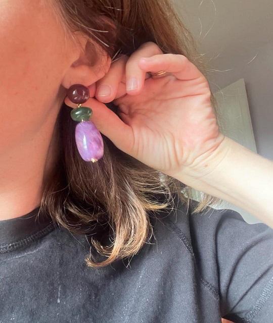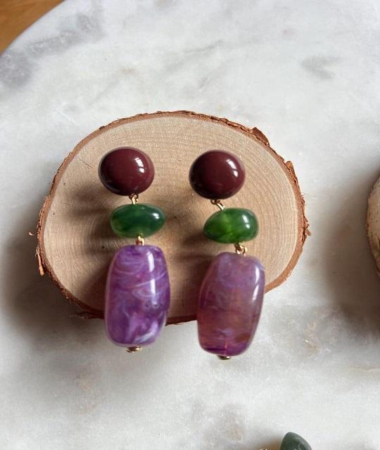 ต่างหูสตั๊ดรูปทรงเรขาคณิตทำจากหินเรซินรูปไข่แบบไม่เรียบสำหรับผู้หญิงเครื่องประดับ