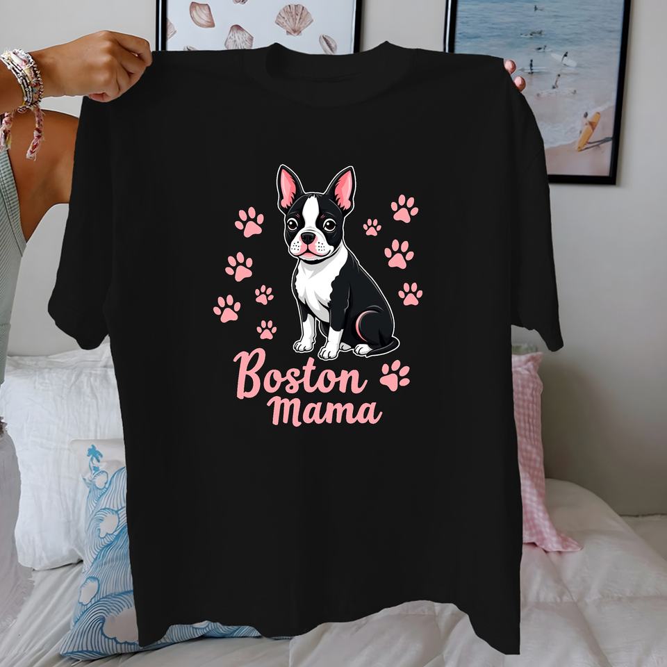 เสื้อยืดผ้าฝ้ายแท้สำหรับผู้หญิง Terrier Boston Mama ใส่สบาย