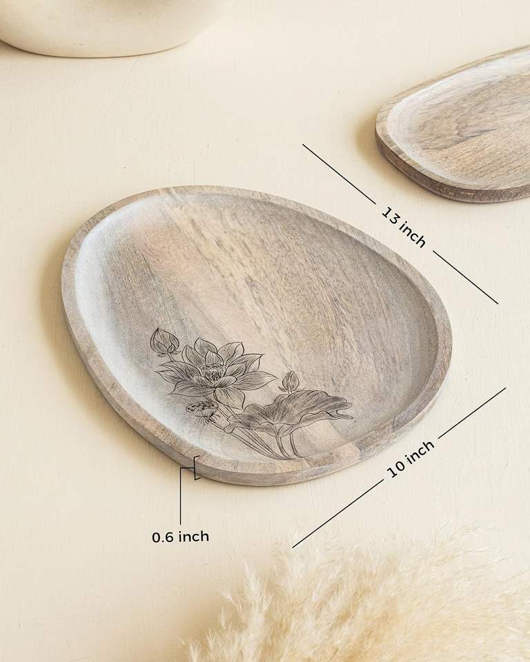 แผ่นเสียงรูปไข่ที่ทำจากไม้มะม่วงนี้เหมาะสำหรับการเสิร์ฟของว่างหรือของหวาน