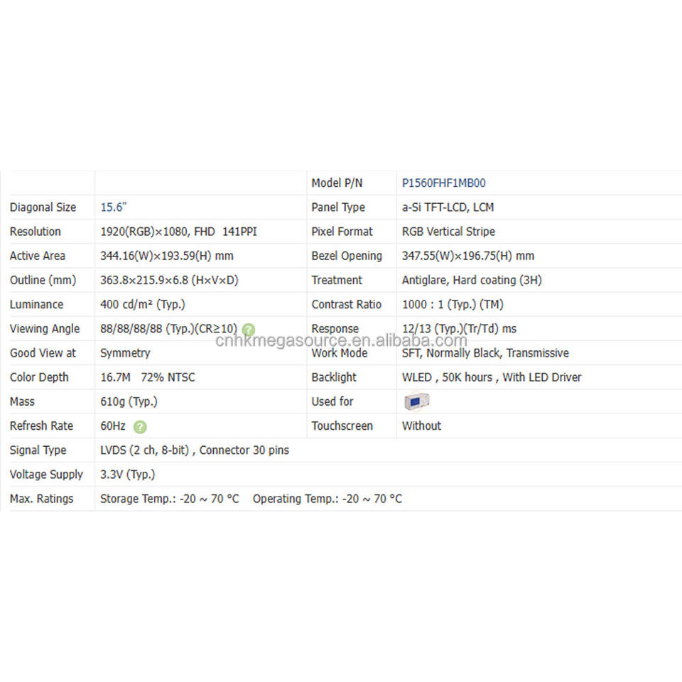 Tianma 100% แบรนด์ใหม่แผง P1560FHF1MB00 LCD 15.6นิ้ว1920*1080แอลซีดีแบบสมบูรณ์หน้าจอ LCD