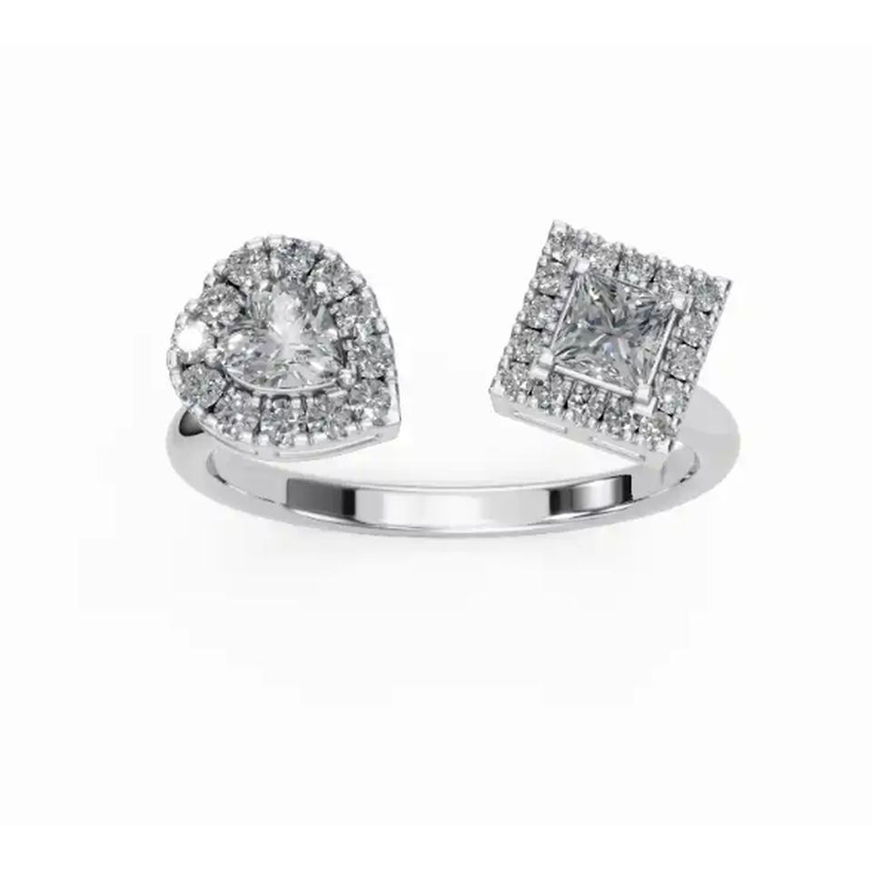 Toi et Moi หัวใจและเจ้าหญิงฮาโลแลปโตแหวนเพชรสำหรับปลูกใน9K 14K 18K สีเหลืองกุหลาบขาวทองเครื่องประดับสำหรับงานหมั้น