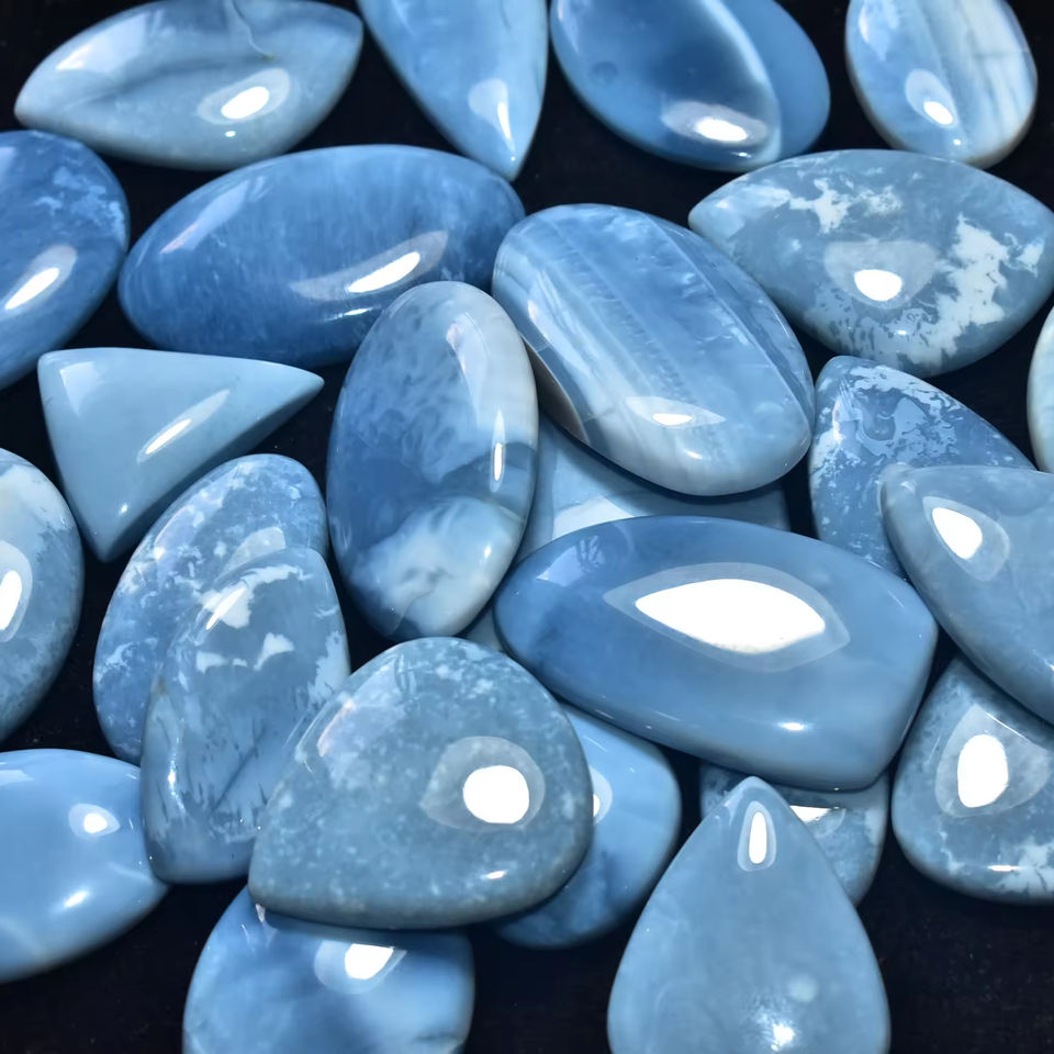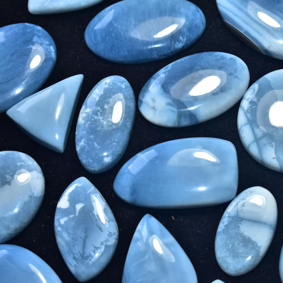 พลอยโอปอลทรงหลวมอัญมณีทรงหลังเบี้ยสีฟ้า