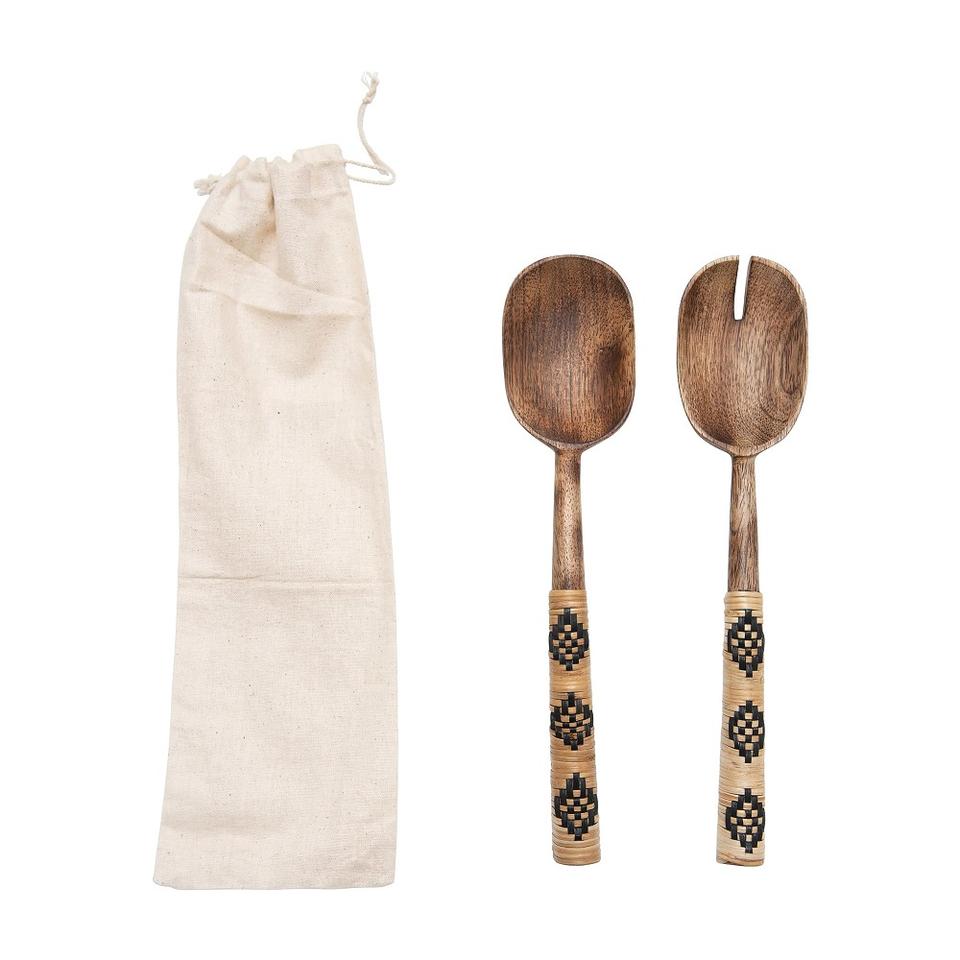 top selling Kitchen Cooking Utensil Cutlery Set Durable Wood Salad Mixing Dinner Fork and Spoon Long Handle Salad item
