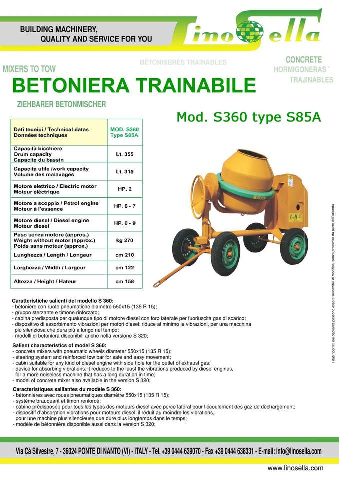 เครื่องผสมคอนกรีตแบบลากได้ Lino Sella มีล้อนิวเมติก4ล้อเครื่อง360ปูนซีเมนต์สำหรับการก่อสร้าง