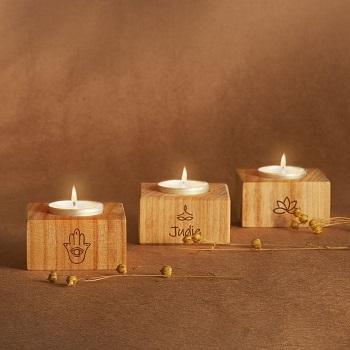 เชิงเทียนไม้แบบดั้งเดิมสำหรับตกแต่งบ้านจาก F S International